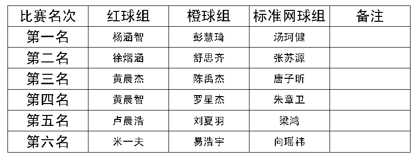 第二届“小天鹅”杯暨宏宇小学2016年上学期网球比赛成绩表