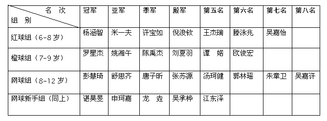 宏宇小学2016年下学期暨第三届小天鹅杯网球比赛成绩表